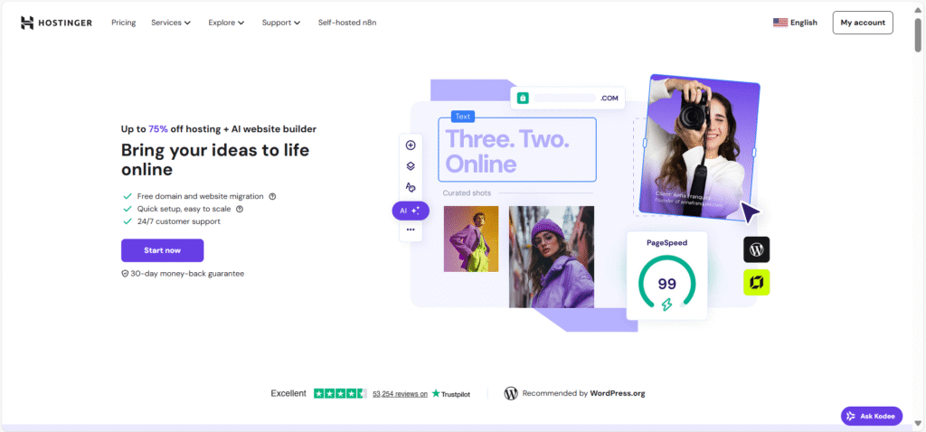 In 2025, Hostinger is one of the most dependable hosting providers thanks to its uptime, impressive page loading speeds, and security. Regardless of whether you have a personal blog or a small business website, you can trust Hostinger to perform consistently, day in and day out.
